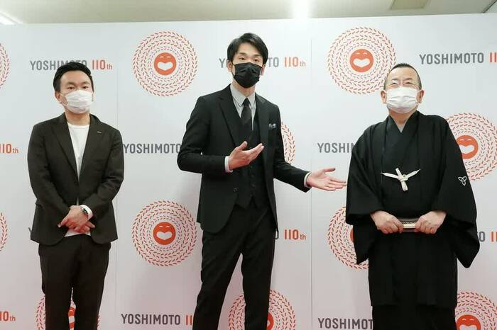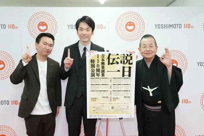 4月3日、大阪・なんばグランド花月(NGK)で開催された、吉本興業創業110周年特別公演「伝説の一日」。2日間に渡って行われたイベントの最終日千穐楽に出演した桂文珍さん、かまいたち(山内健司・濱家隆一)の2組が、出演後に記者の囲み取材に応えました。