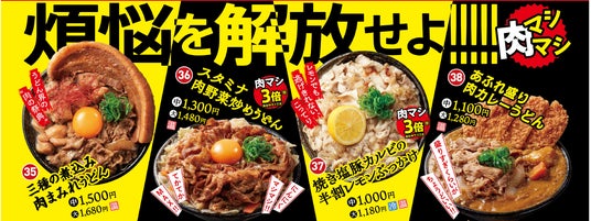 ※:「三種の煮込み肉まみれうどん」「焼き塩豚カルビの半割レモンぶっかけ」「スタミナ肉野菜炒めうどん」「あふれ盛り肉カレーうどん」が対象。うどんのみ対象、丼は対象外です。