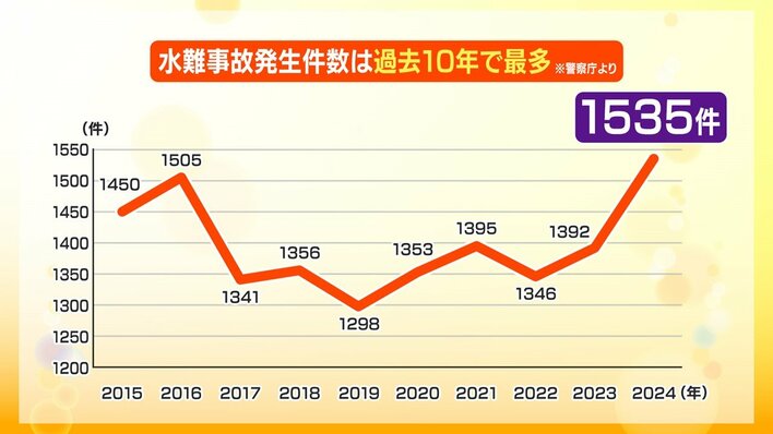警察庁によると、2024年に全国で発生した水難事故は1535件。過去10年で最多となりました。