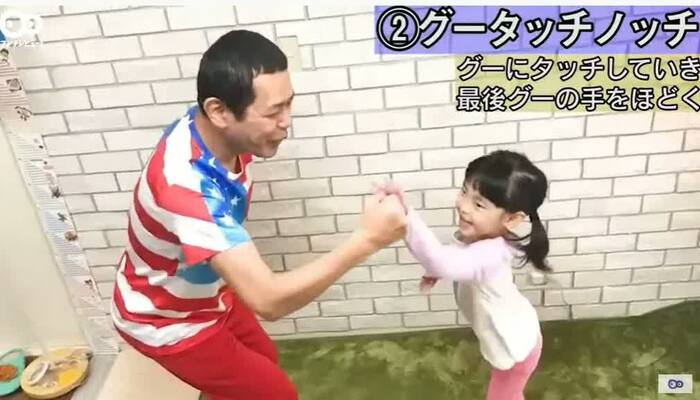 「手をグーにした状態から指を1本1本開いていくのが、子どもは気持ちいいみたいです。この体操をやる場合は、事前に必ず、お子さんの爪が伸びていないか確認してあげてください。子どもは本気で力を出してきますので、グーをしっかり握ってやってみてくださいね」(ノッチ)