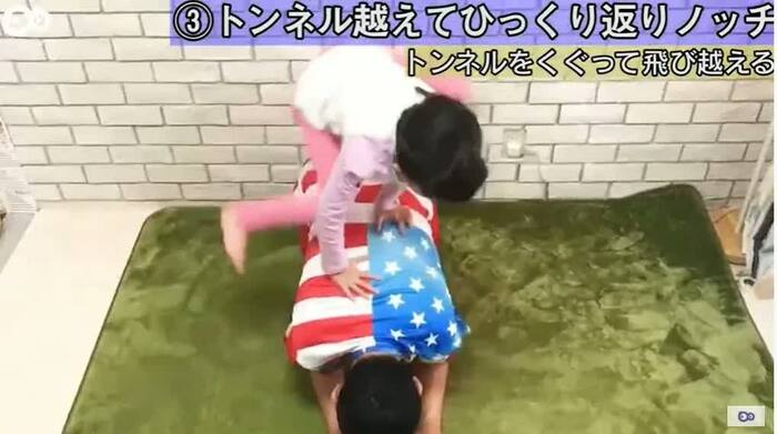 「デンジャラス・ノッチです!この体操は長女が小さい頃から一緒にやっております。ちょっとお堅い体操は、すぐに飽きてしまってなかなかやってくれないんですが、この体操はゲーム感覚で遊びながら楽しみつつやると、毎回やってくれます」
