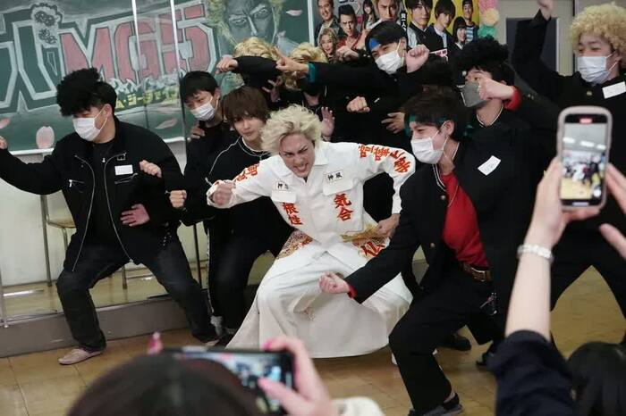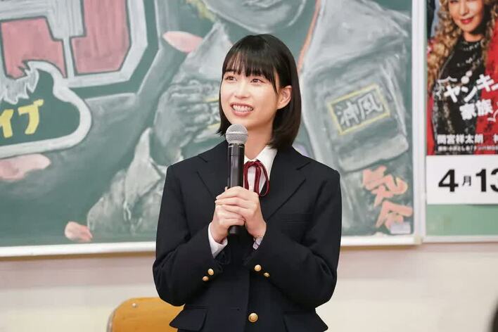 間宮さんらはドラマの役衣装で、会場の教室に登場。 思い思いの“ヤンキースタイル”で集まった地元の高校生たちに、迎えられました。