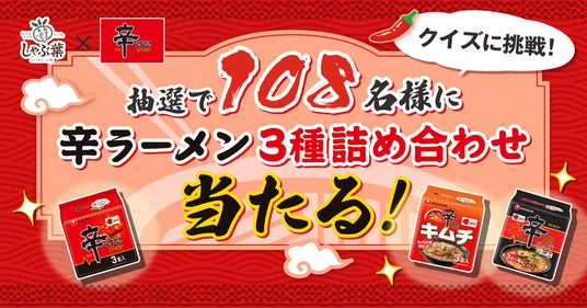 8月8日(金)からはしゃぶ葉×辛ラーメンコラボを記念したXキャンペーンを開催します。しゃぶ葉公式X・辛ラーメン公式XをWフォローし、クイズ「しゃぶ葉×辛ラーメン アレンジマスターへの道」に挑戦。結果をXでシェアすると、抽選で108名様に「辛ラーメンシリーズ3種詰め合わせ」をプレゼントします。