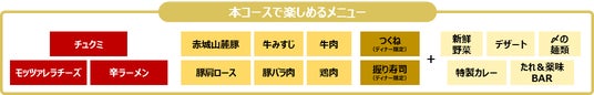 対象コースは、各食べ放題コース内容に加えて韓国グルメが無料で食べ放題