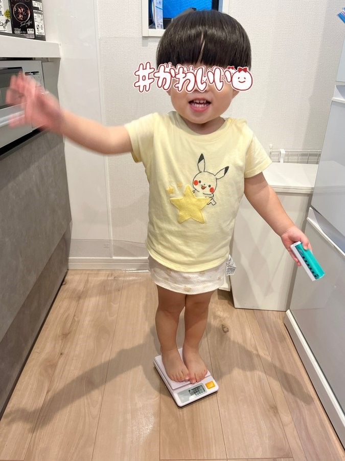 お母さんは「キッチンスケールに乗るという大人には思いつかない発想と、重さを計るものとちゃんと理解していたことにビックリしました。」と明かしています。