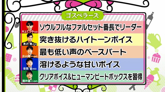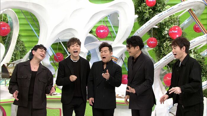 10月28日の放送に、FODとTVerで無料配信中のオリジナルアニメ『アカペラ侍~ハモリ隊が江戸を救う!~』で主演声優を務める5人組ボーカルグループのゴスペラーズ(村上てつやさん、黒沢薫さん、酒井雄二さん、北山陽一さん、安岡優さん)が登場しました。