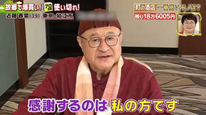 近藤春菜さん(ハリセンボン)が、故郷の東京都狛江市で70万円分の爆買い恩返しに挑みました。