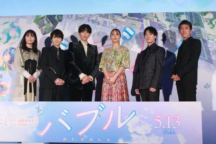 志尊淳さんが主演を務めるアニメーション映画「バブル」の完成披露イベントが4月7日に行われ、志尊さん、広瀬アリスさん、梶裕貴さん、畠中祐さん、千本木彩花さん、荒木哲郎監督が登壇しました。