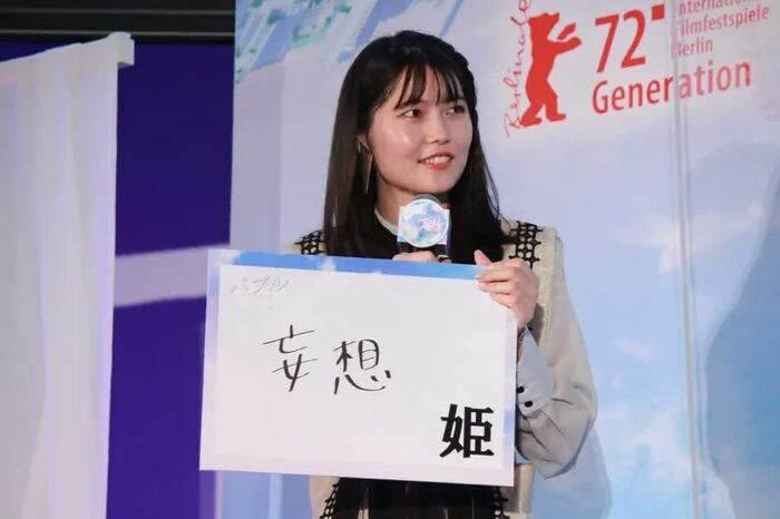 スクリーンに映し出されたりりあ。さんは、ウタ役について「初めてこのお話をいただいたときは『私に務まるのか?』という不安が大きかったです。初めての声優なのにヒロイン…。でも、荒木監督が『普段のままのりりあ。さんでいいよ』と言ってくださって。演じずに、普段の私のままアフレコが出来て、非常にやりやすかったです」と振り返りました。