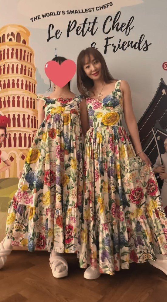 そしてこの日は、娘とおそろいの、幾何学模様があしらわれた黄色いワンピースを着用!