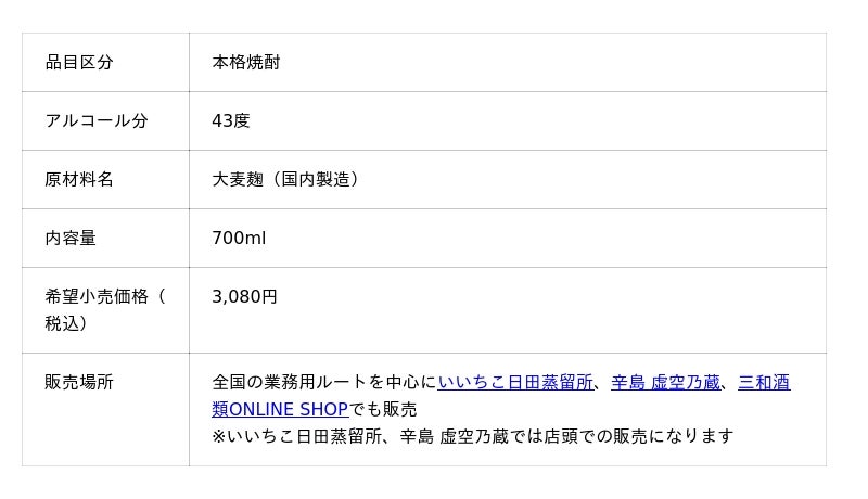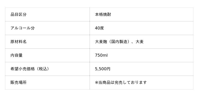 ―日本伝統の麹の「うまみ」を最大限に表現した本格麦焼酎―