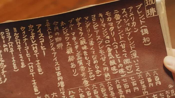 劇中、純平はメニューに付箋で貼られた、今月の珈琲(700円)が気になった様子。この時は、「ドミニカバラオナAA」という品種が提供されていましたが、純平の頭には「?」が並びます。