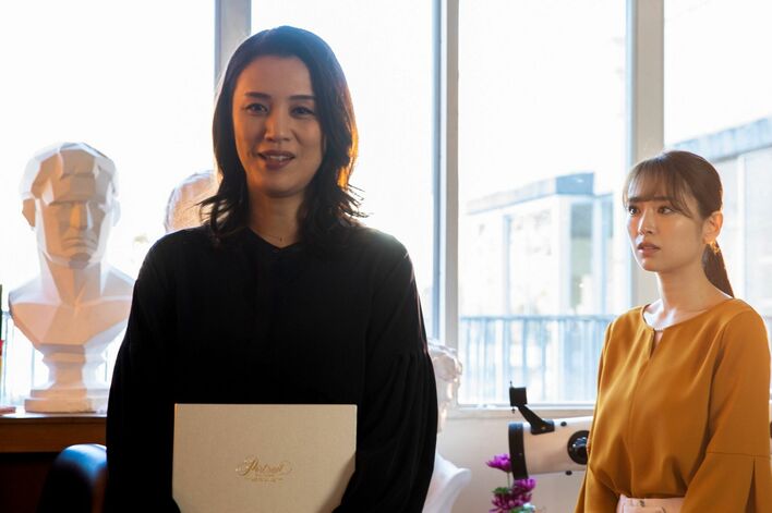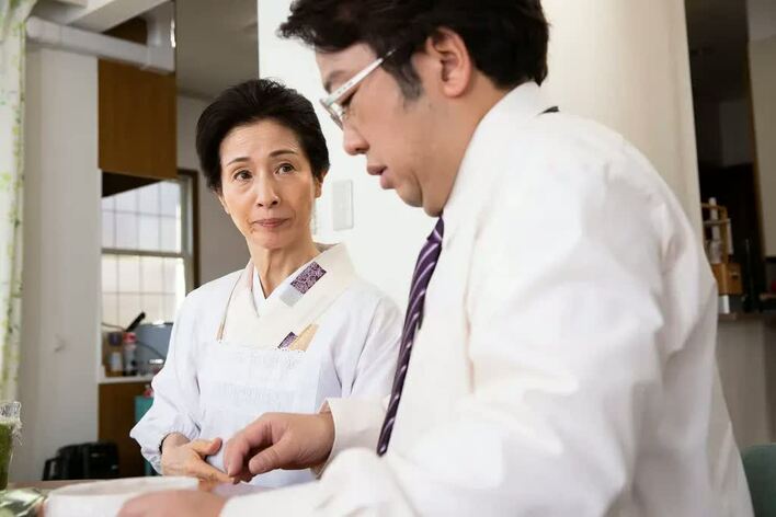 冒頭、パパ(天野ひろゆき)が昔描いたとおぼしきお母さん(=つまり正子おばあちゃん:松原智恵子)の似顔絵…だけどそれがすっごく怖い似顔絵…何故なら妙にうまいし、“大好きなお母さんへ 門倉和彦”って超美文字で書いてあるし、絶対小学生とかじゃない、おそらく高学年で、なんなら高校級のレベル感が出てるし、それが例えば小学生の絵だとしても高校生の絵だとしてもどっちにしろ、いろんな要素が度を越してて、背筋が凍るほど、恐怖の似顔絵…それを正子おばあちゃんが引っ張り出して、懐かしんで、微笑む…その背後に…