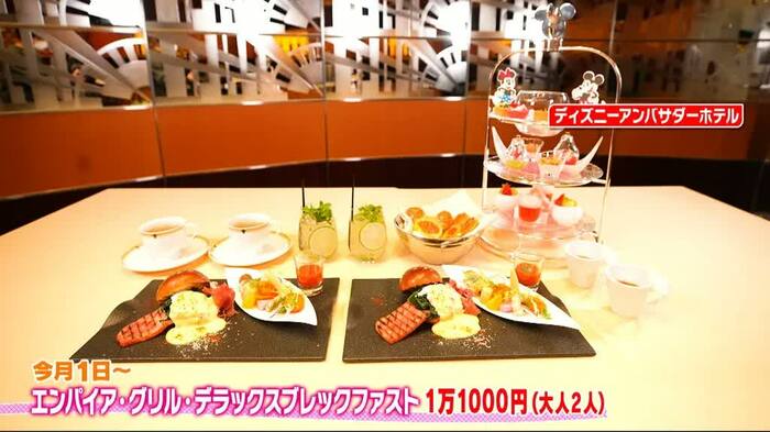 ここは、ドナルドダックやチップとデールなど、キャラクターをテーマにした客室が人気のホテルですが、 今月1日からホテル内にあるレストラン「エンパイア・グリル」で宿泊者限定の豪華朝食メニューが登場しました。