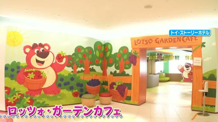 続いてはピンクのくまのぬいぐるみ、ロッツォをテーマにしたレストラン「ロッツォ・ガーデンカフェ」。こちらではブッフェ形式の食事を楽しむことができて約50種類の料理を提供しています。