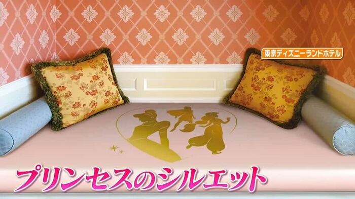 ベッドカバーやソファーなどにはプリンセスのシルエットがプリントされていてディズニープリンセスの世界を存分に味わえる部屋になっています。