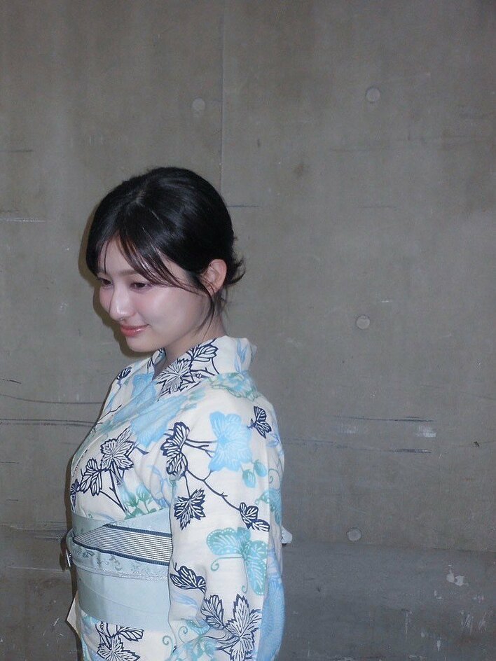 投稿された写真には、ベースのアイボリーに水色や紺色でお花が描かれた、なんとも爽やかな浴衣に身を包んだ吉川さんの姿が。