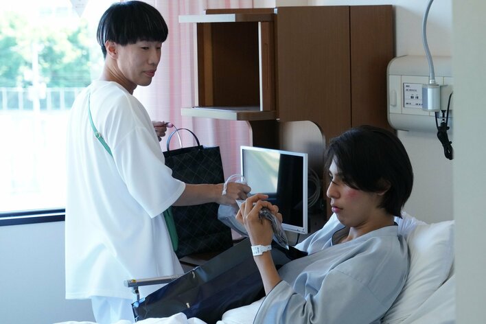 見舞いにやってきた竹千代(坂口涼太郎)に、カヲルは愛実と会っていたことを打ち明けた。