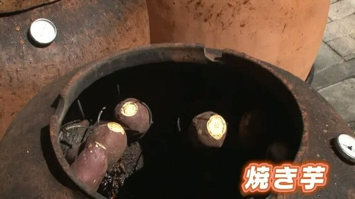 ずら〜っと並んだ壺の中では5ヵ月以上も熟成した芋を炭火で焼いています。遠赤外線効果でお芋の芯まで熱が通って甘さを最大限まで引き出してくれるそうです。