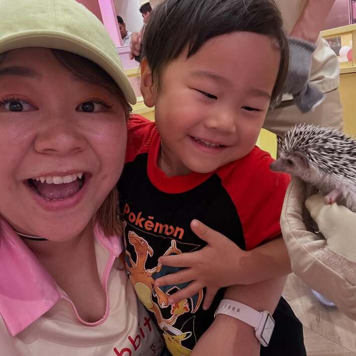 小動物を前に息子がドキドキ!やしろ優 家族で原宿へお出かけ