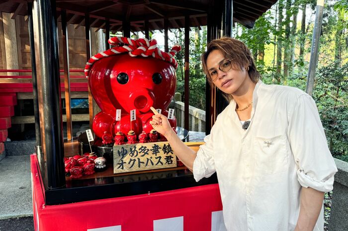 上田さんは神社の階段の下で「オクトパス君」の着ぐるみとふれあいつつ、「オクトパス君」グッズを扱っているお店で「置くと(試験を)パスする」と受験生に愛されているお守りを物色。ピンクと青、紫の「オクトパス君」の置物を「こうなったらKAT-TUNだね」と並べながら、メンバーへのお土産をゲットしました。