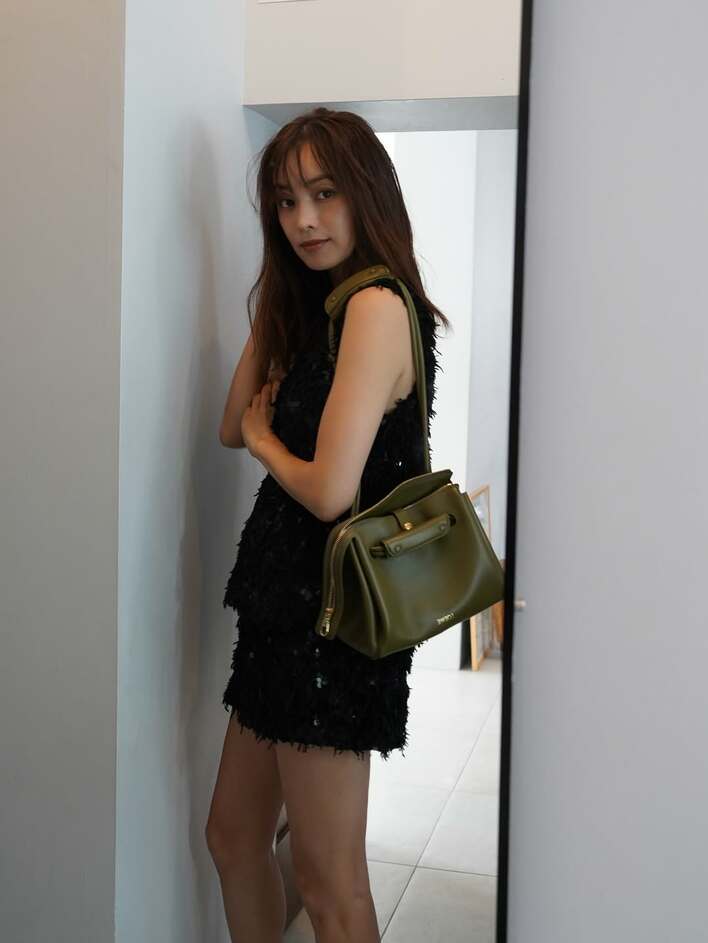 今回の投稿で「温かみのある発色がお気に入りです♡」とつづり、ロエベのレザーバッグを持ったショットを公開した、2児のママでもある蛯原さん。