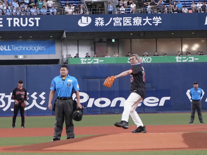 始球式に登場した台北駐日経済文化代表処の周学佑副代表