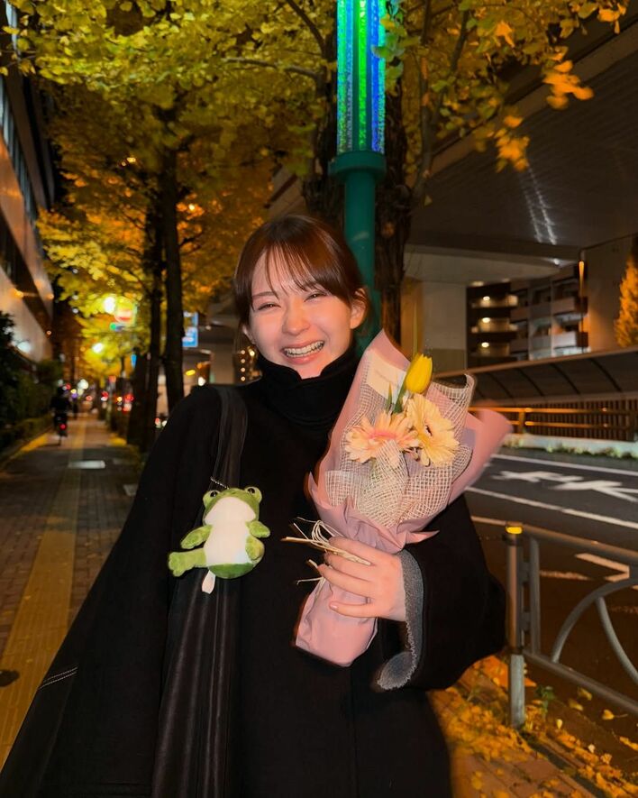 投稿された写真には、黄色とピンクの花束を持ってカメラに向けて満面の笑みを見せる畑さんの姿が!