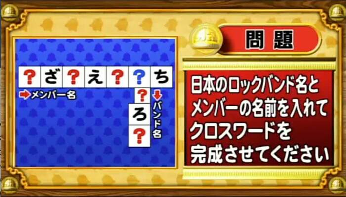 次は、バンドクロスワードの問題。日本のロックバンドの名前とメンバーの名前を入れて、クロスワードを完成させてください。