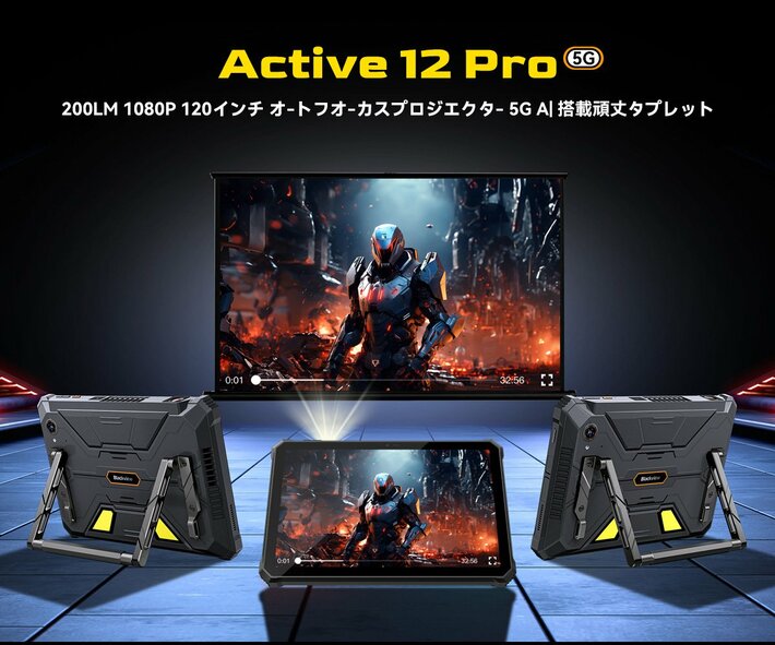 2025年8月4日、Blackviewは、200ルーメンの1080PオートフォーカスDLPプロジェクターを内蔵した5G対応タフネスタブレット「Blackview Active 12 Pro」の世界同時発売を発表しました!