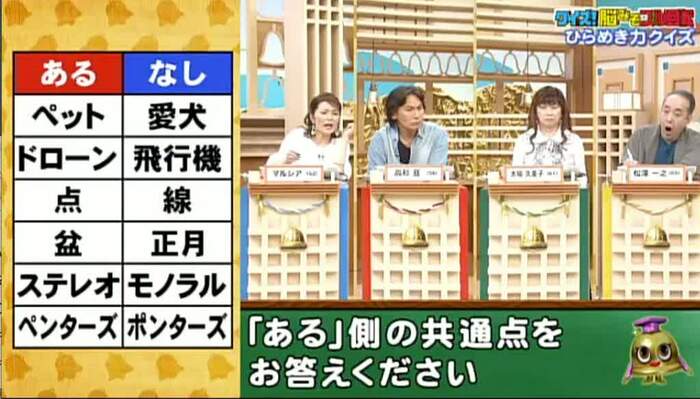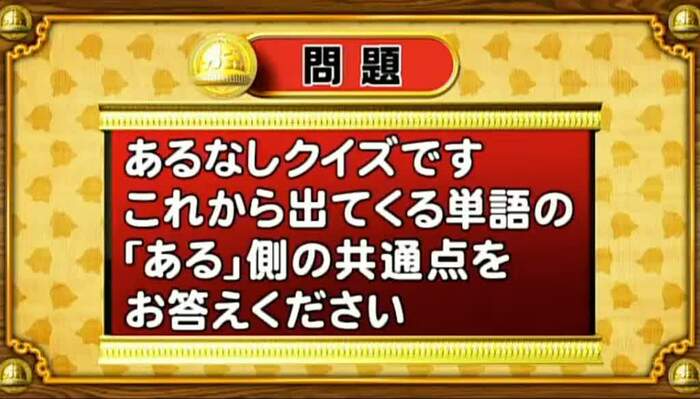 次は、あるなしクイズ。次の単語の「ある」側の共通点を答えてください。