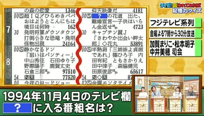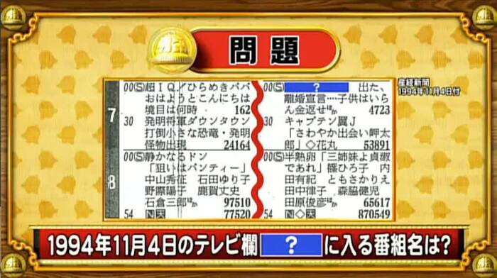 最後は、テレビ欄の問題。1994年11月4日のテレビ欄「?」に入る番組名は何でしょう?