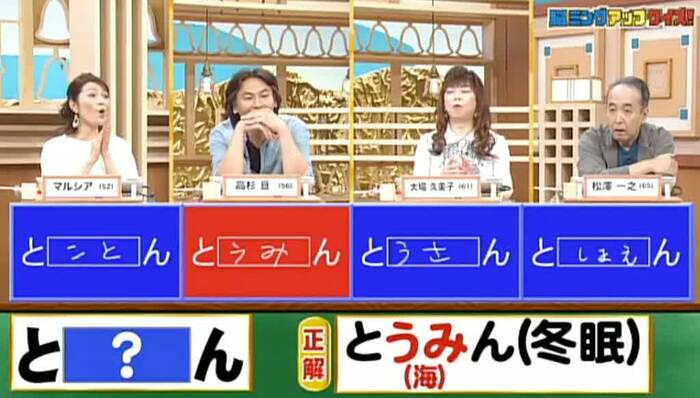 正解は「とうみ(海)ん(冬眠)」。高杉さん1人だけ正解!