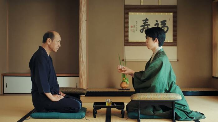 WEB動画の撮影前、藤井さんと福寿園茶匠・谷口さんの対面に、現場は荘厳な雰囲気に包まれていたそうです。藤井さん自身が実際にお茶を飲み、味について谷口さんとの意見交換を経て撮影に臨んだといいます。