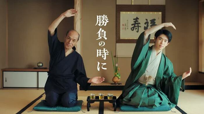 新商品は、「勝負の時に飲みたいお茶」として、藤井さんが実際に味わいを選び、中味を開発。WEB動画では、将棋の勝負さながらに、伊右衛門のブレンドを長考しながら最終決定する藤井さんの様子が描かれています。藤井さんが 長考し、ダジャレを交えつつ、ここ一番の勝負の緑茶を決める過程が伝えられています。