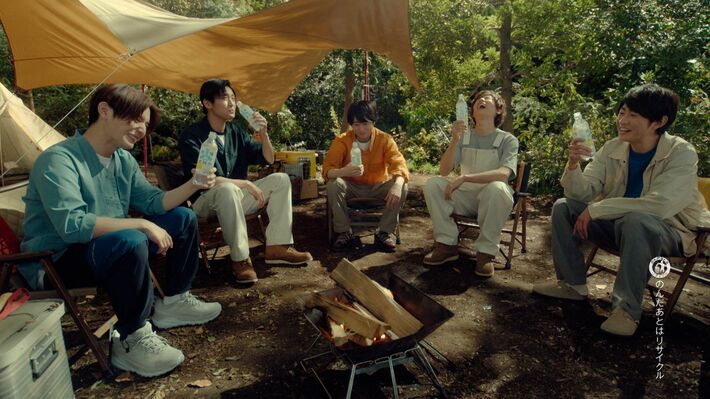 笑い声の絶えないキャンプ場で、さらにゴクゴクと商品を飲む相葉さん。これからいよいよ夜を迎える5人でのキャンプライフに、期待に胸を膨らませているようです。