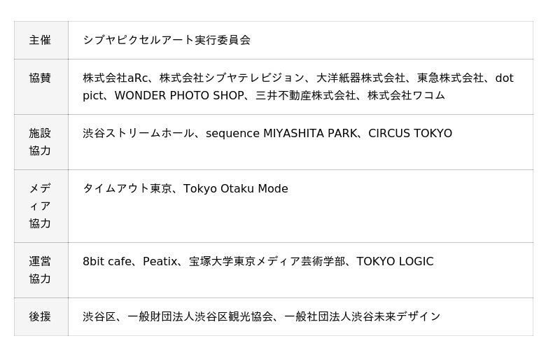 シブヤピクセルアート(以下、「本イベント」という)は、1990年代のITバブルの時代から「BIT VALLEY(ビットバレー)」と呼ばれる渋谷を舞台に、毎年開催される世界最大規模の「ピクセルアートの祭典」で、今年で9年目を迎えます。