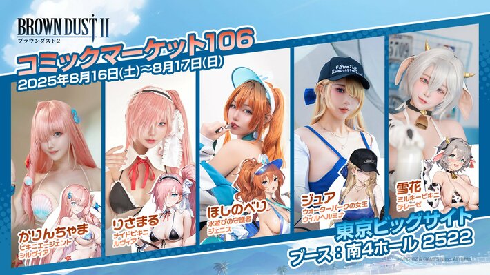 株式会社NEOWIZ (本社:韓国 京畿道城南市、共同代表:金 承徹(キム・スンチョル)/裵 泰根(ベ・テグン))のスマートフォン向けRPG『ブラウンダスト2』は、明日から開催される「コミックマーケット106」に出展いたします(南4ホール 2522)。