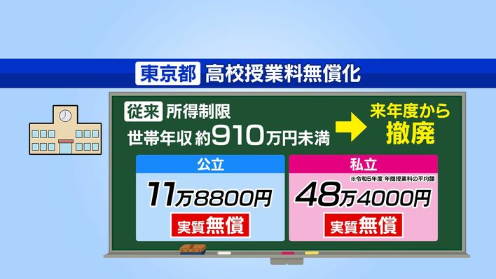 今年の4月から、公立高校の授業料無償化の条件となっていた「世帯収入約910万円未満」の制限が撤廃されることが決まった東京都。