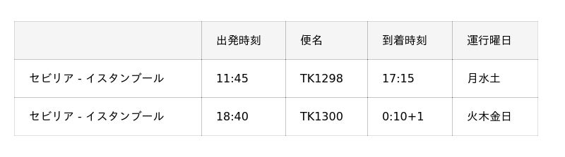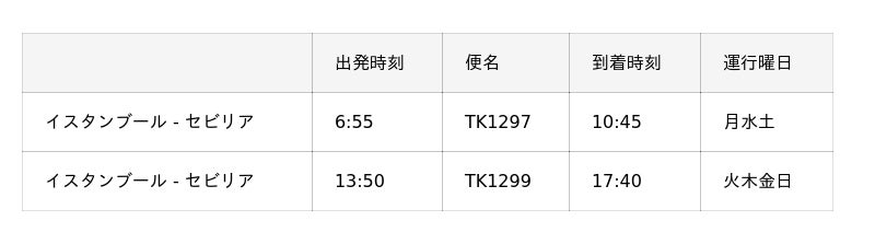 【日本⇔セビリア乗り継ぎ予定スケジュール】