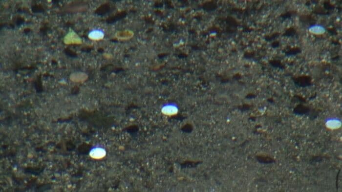 その澄み渡る水の中を見ると、丸く光る無数の硬貨が確認できます。