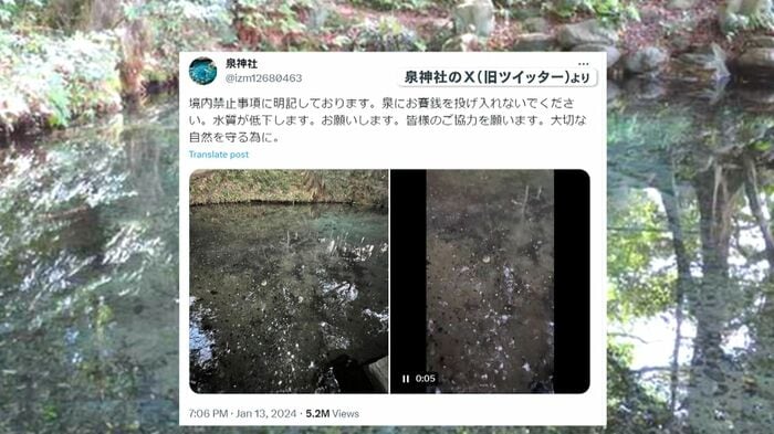 さらに、公式X(旧ツイッター)にも「泉にお賽銭を投げ入れないでください」と投稿しました。