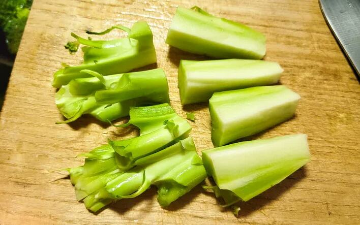 2.ブロッコリーの茎を約5センチ幅にカットします。