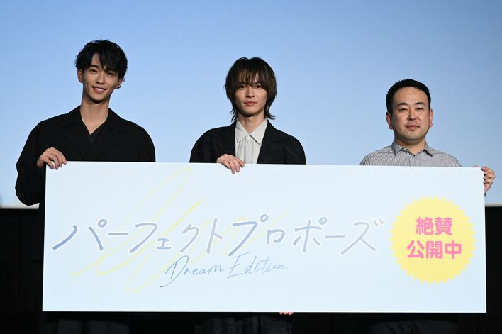 映画『パーフェクトプロポーズ Dream Edition』の公開記念舞台挨拶が10月26日に行われ、金子隼也さん、野村康太さん、宝来忠昭監督が登壇しました。