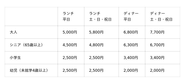 提供時間:ランチ 11:30~14:30 最大90分、ディナー 17:30~20:30(土・日・祝日17:00~/休前日~21:00)最大120分