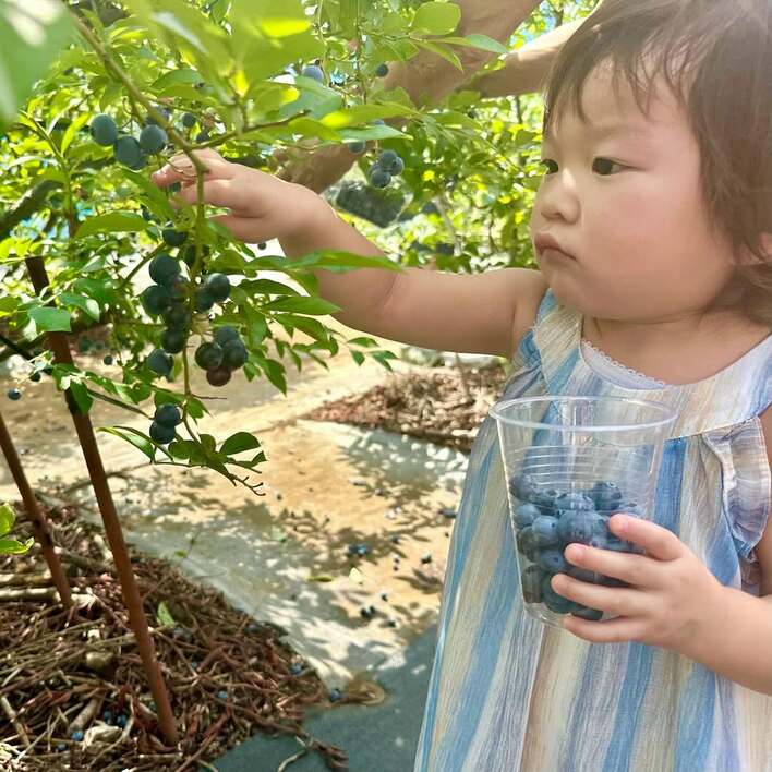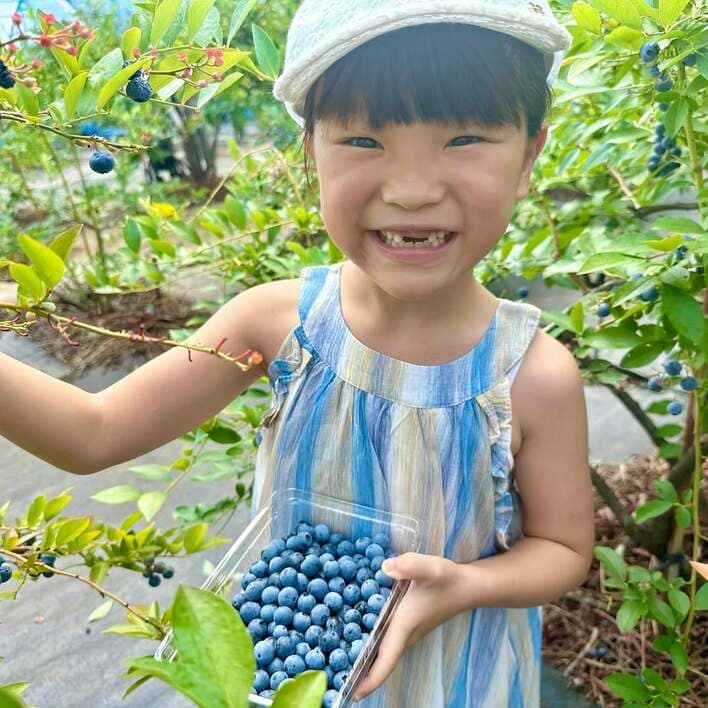 SNSからは「まるでブルーベリーの妖精みたい」「ブルーベリーと服のコーディネートがお揃いだ!」「いっぱい収穫できて良かったね~」など注目の声が寄せられています。
