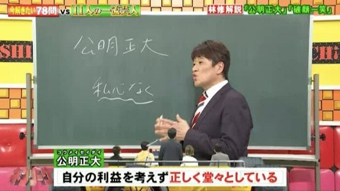 林修先生は、クイズに登場した「枝葉末節」「公明正大」「破顔一笑」という四文字熟語の意味を解説してくれました。