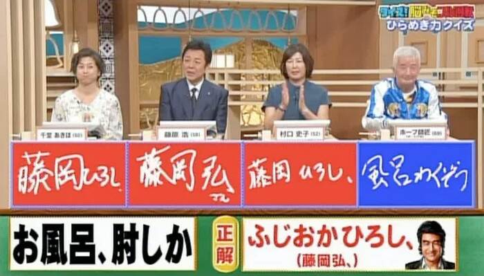 正解は「ふじおかひろし、(藤岡弘、)」。ホープ師匠以外、正解!