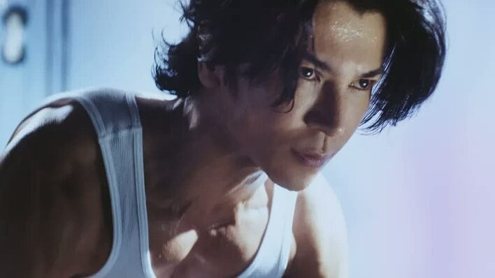 トレーニングの途中で、「カラダを鍛えるように、美しさも鍛えよう」という武田のナレーションに合わせ「メディリフト」を着用。表情筋まで美しく仕上げられた武田の表情にフォーカスされる。