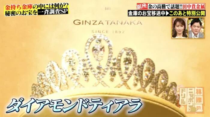 従業員でもその場所を知らないという金庫から、お宝を運んでもらう間、平野は180万円もする純金のクルミの置物や約550万円の兜、約3億円のダイヤモンドティアラなど、店内の商品を見学させてもらうことに。